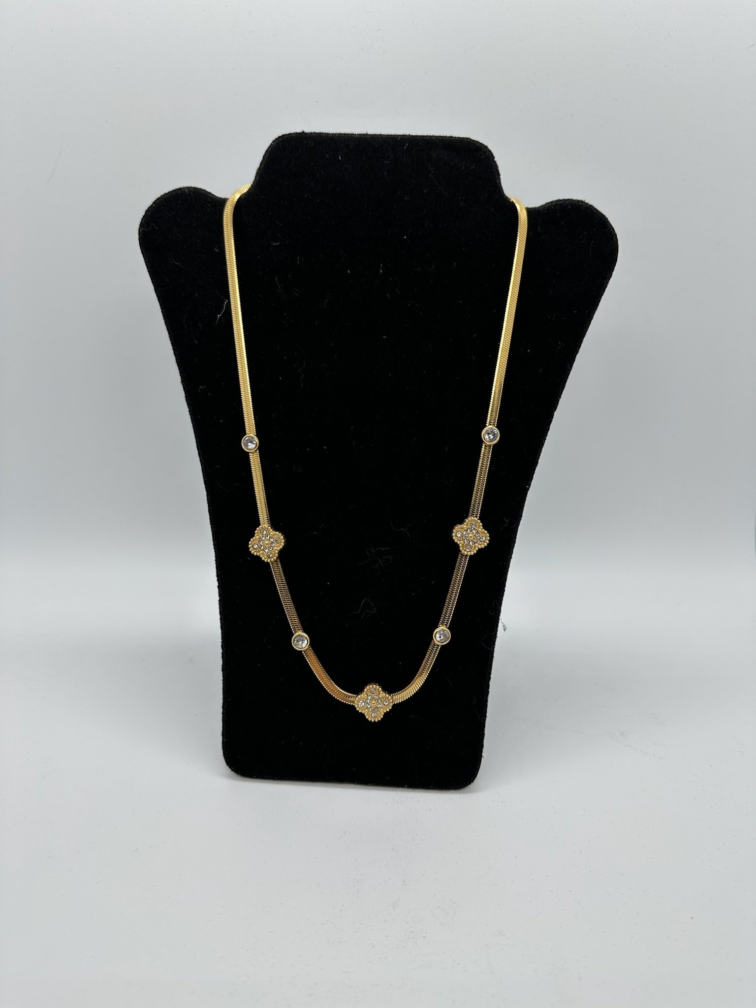 The Lucky Clover Collection is an elegant line of stainless steel jewelry featuring the timeless four-leaf clover motif. Each piece, showcases delicate clover designs accented with sparkling crystals, bringing a sense of luck and sophistication to your look. With a high-quality gold-tone finish, these pieces are designed to be durable and stylish. Perfect for mixing and matching or wearing individually, the Lucky Clover Collection adds a touch of charm to any outfit, whether for everyday elegance or a special occasion.